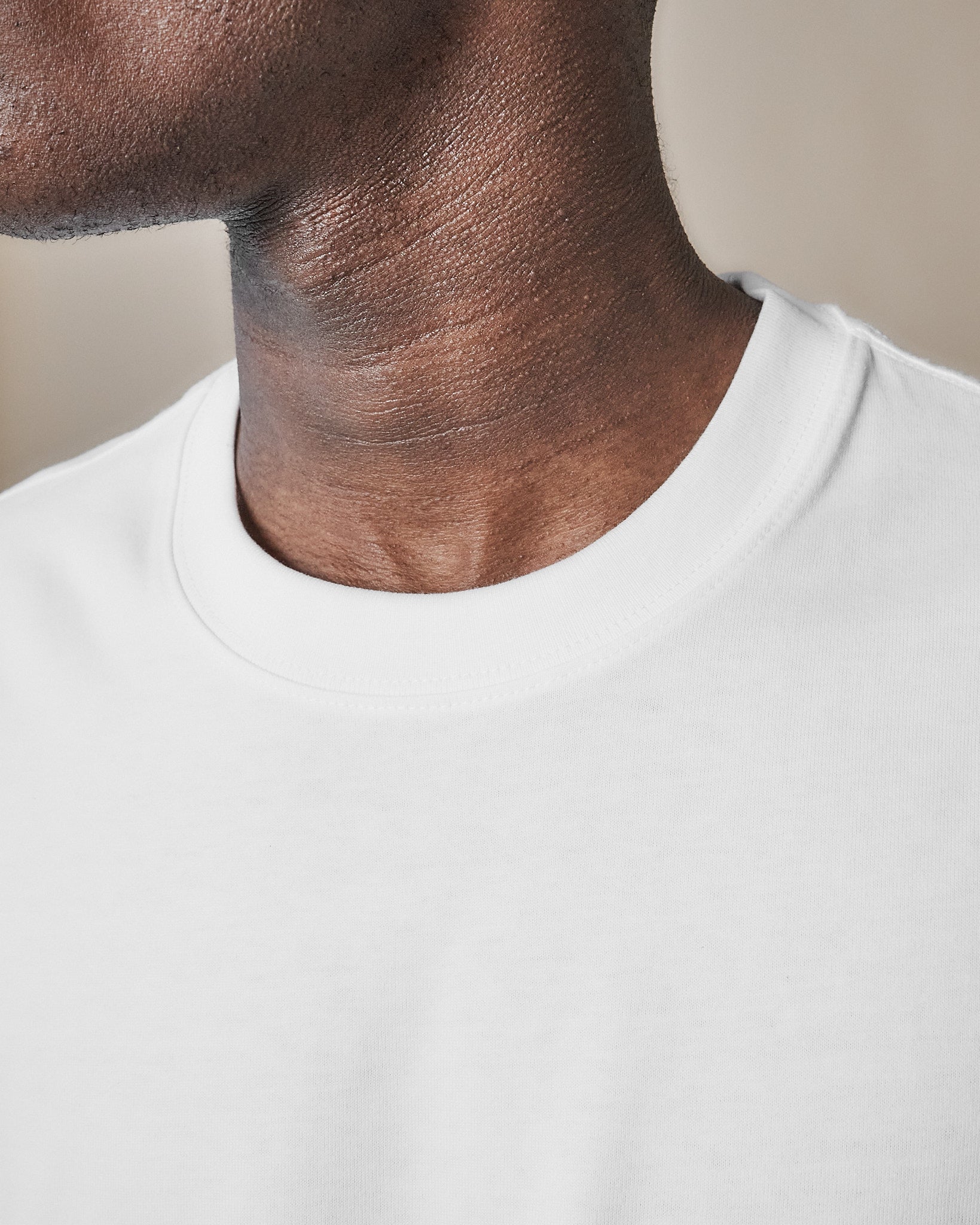 A boxy, relaxed tee with a deliberate, modern proportion, dropped shoulders, a slightly shorter body, and a clean, structured drape. Cut from heavyweight combed cotton with a wide rib crew neck and reinforced finishing throughout.